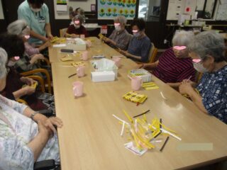 2025.08.12 あおえ岡山 ペーパークラフトの『コースター🥛』作り 紙でできたクラフトバンドを使って、コースター作りに挑戦しました!準備したコースターの枠にお好きな色のクラフトバンドを編んでいきます。 クラフトバンドはチョット固いから力がいるけど、がんばるぞー💪 みんなでおしゃべりしながら、コツコツ交互に編んでいくといつの間にか出来上がり❣ ステキなコースターができましたね