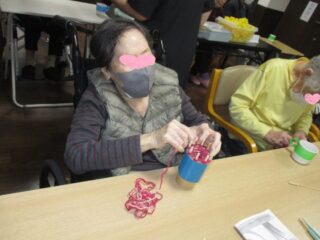 昔なつかしい『リリアン』という手芸・・・毛糸を使ってはじめてみました。「やったことあるよ♪」とみなさん興味しんしん❣子どもの頃の感覚がすぐによみがえってきたようです。