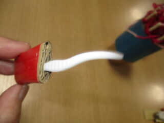 段ボールの目に割りばしを突き刺し、筒に巻きました。