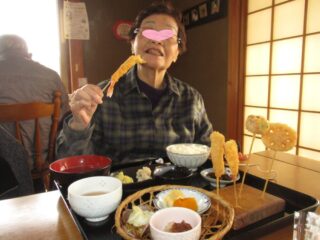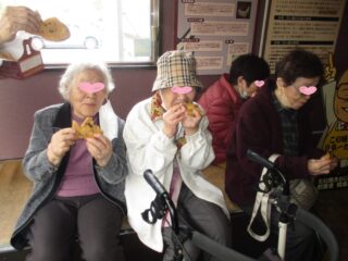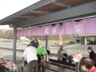 2025.12.02 あおえ岡山 ちょっとお出かけ!みんなで『足湯』を楽しむ! 手軽に足湯が利用できる良い所・・・『たけべ』にありましたよー 久しぶりに外出できるということで、みなさんずいぶん前から楽しみにされていました! さっそくお湯につかりましょう体のしんまで温ったまるワ~ この日は揚げたてのフライがバンバンささったお昼ご飯 『日本一のたい焼き』も食べたぞー たい焼きは別腹!しあわせ、満喫!!!!!