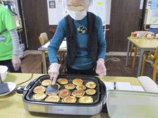 2025.12.24 あおえ岡山 🥞ホットケーキで『クリスマスパーティー☕』を楽しみました♪ 🎄クリスマス週間のおやつはホットケーキのホイップ&あんこ添えです 利用者さまにも手伝ってもらいました。う~ん美味しい匂いが部屋中にあふれます 利用者さまのお気に召すまま「あんこ多め」「ホイップ多め」にお応えします!思わず「ほっぺたが落っこちる―――👍」