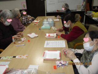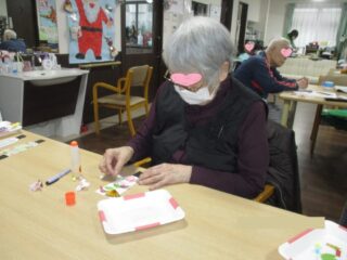 2025.12.25 あおえ岡山 🎍羽子板の『お正月飾り』が新年を飾ります♪ 羽子板の形に切った厚紙に和紙を貼り、利用者さまに自由に飾りつけをしてもらいました♪用意した飾りはこちら 扇や紅白の梅の花など、「おめでたい」をいっぱい準備しましたよ ちょっと飾りが細かいですが、思い思いのデザインで作業が進みます 最後に自分の名前を記して『お正月飾り』」が完成ーーー! 皆さま!どうぞ良いお年をお迎えください