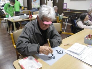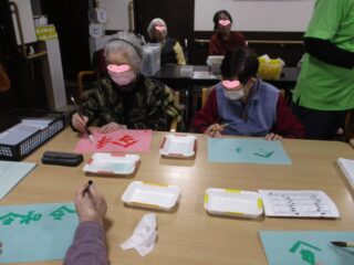 2026.01.20 あおえ岡山 こころ💛落ちつく『書初め』の力💪 美しい筆使いですね。筆に水をつけているだけなのに文字がスイスイ現れてきます。1月なので『書初め』を水書道で楽しんでもらいました「お習字なんて何年ぶりかなぁ」そう言いながら筆を持ったとたん・・・背筋がピン! 無心で筆をはこぶ利用者さまたち・・・書道って本当にこころが落ち着くんですね